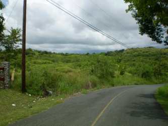 Exterior: Main access road bordered by lush natural vegetation leading towards the development land.