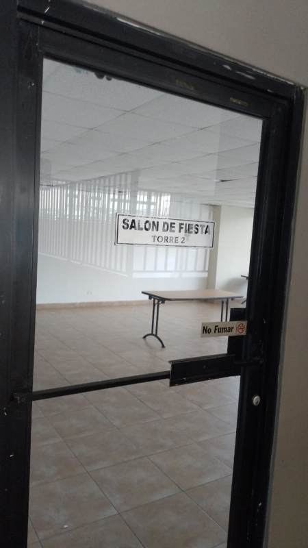 Multipurpose event salon inside PH Torres del Sol with glass doors and folding tables Panama City
