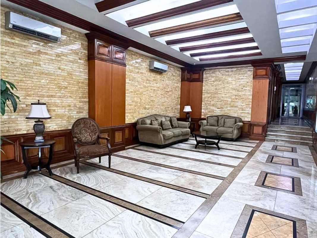 Elegant lobby with sofas, wood paneling and marble floors at PH Portofino San Francisco Panama