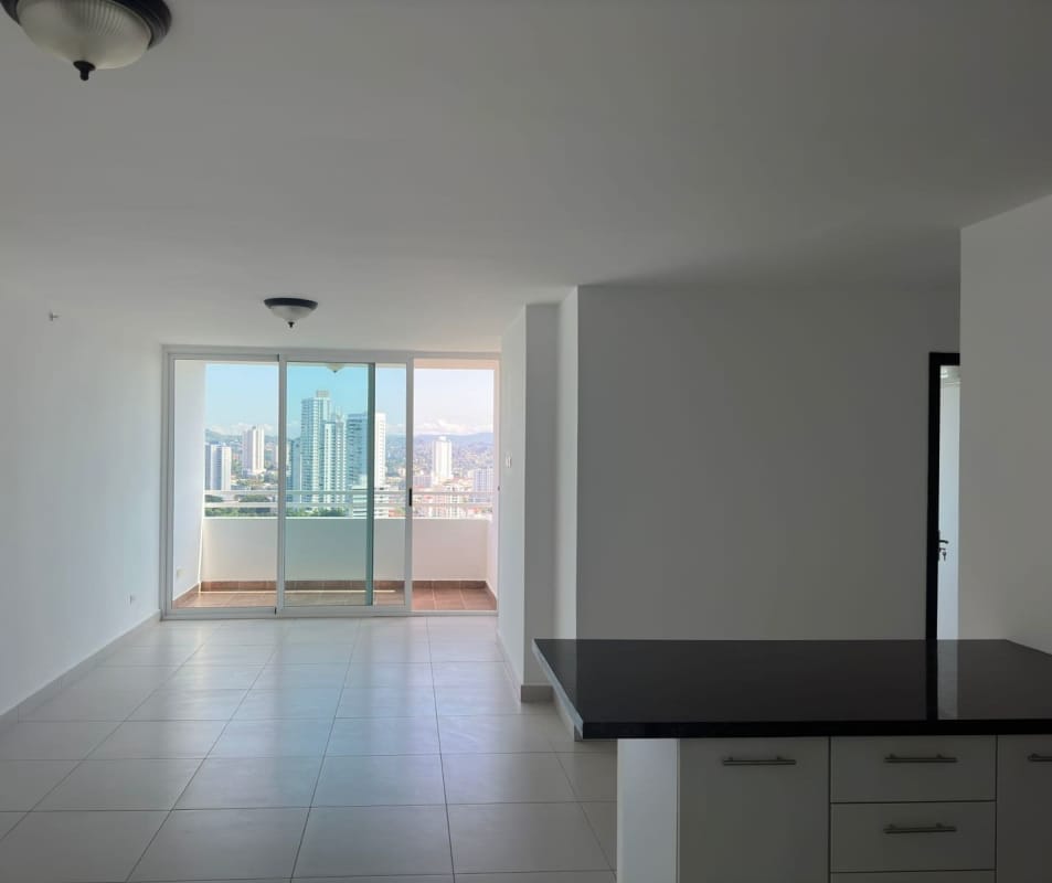 Contemporary kitchen with granite countertops, white cabinets in PH Vista Tower Carrasquilla Panama