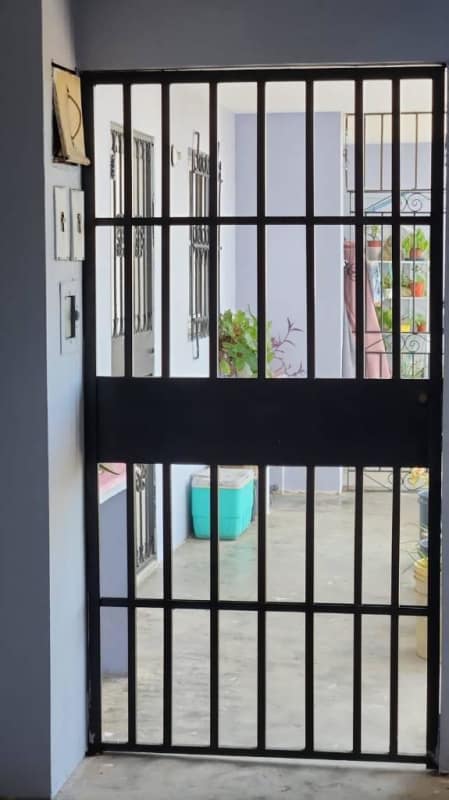 Controlled access gates and metal security doors.