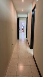 Contemporary hallway with tiled floors and ceiling lights inside Edificio Ricord commercial offices Barrio Colón Panama