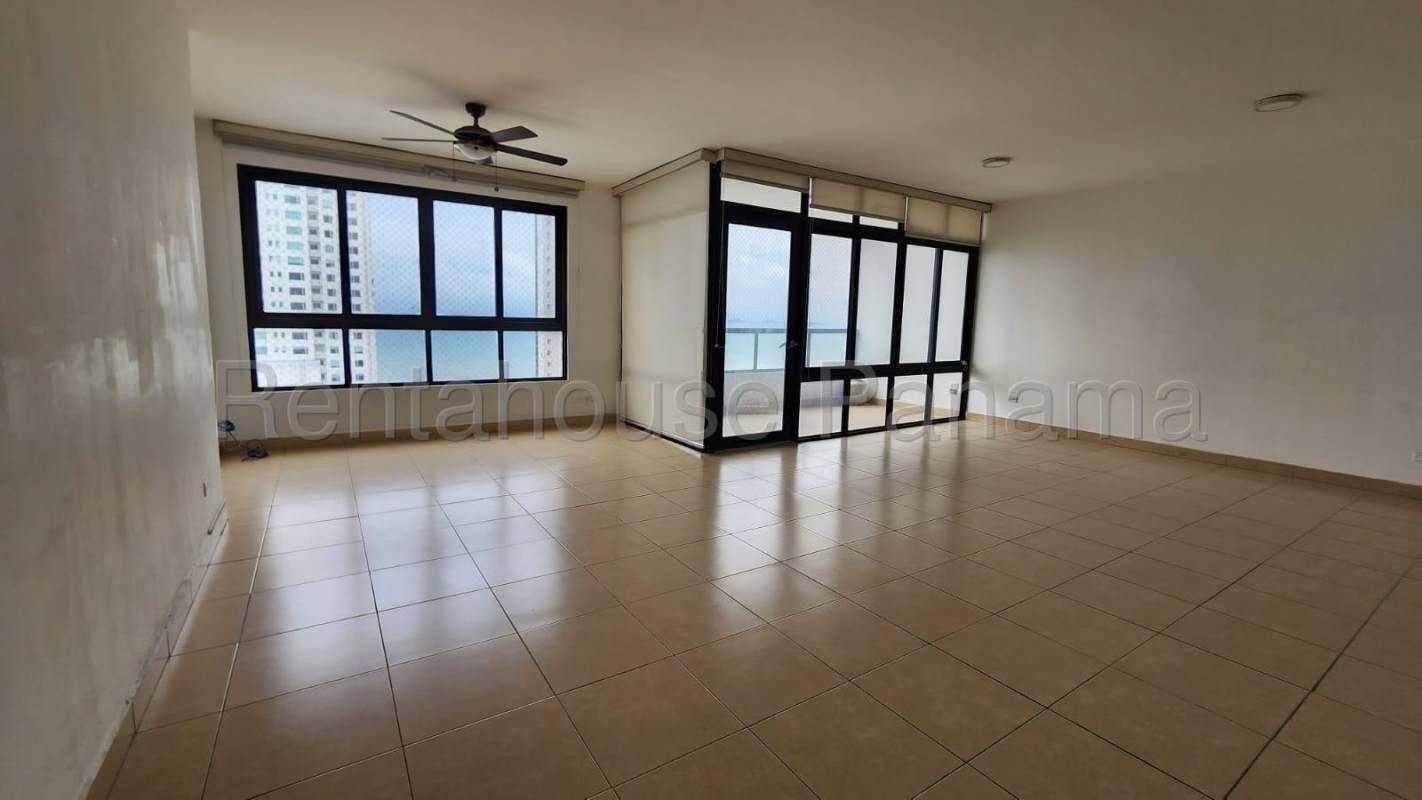 Large open living room with tile flooring, ocean view balcony, in PH Costa del Este Tower Panama