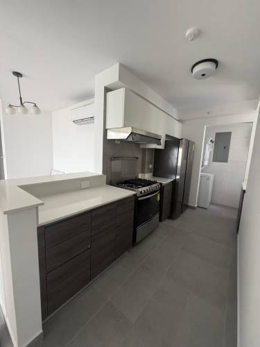 Open kitchen with granite countertops, stainless steel appliances in PH Torres de Castilla Carrasquilla Panama City