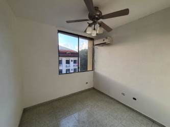 Spacious bedroom with AC, ceiling fan, large window and ceramic tile floors PH Vistas del Atlántico Colón Panama