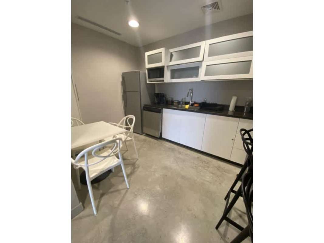 Contemporary office kitchen with granite countertops and dining area at PH Balboa Office Center on Avenida Balboa Panama