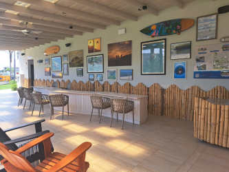 Beach-themed social lounge with entertainment areas.