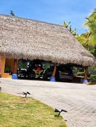 Exquisite luxury beachfront estate located in tranquil Punta Barco. This tropical two-level villa offers an expansive 1,350 m² of construction on a vast 3,641 m² oceanfront lot with 45 meters of prime sandy beachfront. Featuring 4 spacious bedrooms and 4.5 bathrooms, the residence includes elegant ceramic flooring, vaulted ceilings, and open living areas that flow onto terraces with breathtaking Pacific Ocean views. Multiple entertaining spaces include shaded terraces under palapa roofs, manicured tropical gardens with mature palms, a large ocean-facing swimming pool, outdoor Jacuzzi, and direct private beach access. The gourmet kitchen complements the grand dining room, perfect for family gatherings. Secure gated entrance accommodates 6+ vehicles. Minutes to Coronado shopping, dining, and golf. Ideal as a full-time residence, weekend beach home, or luxury vacation rental. Offered at $1,700,000—an exceptional beachfront retreat in Panama.