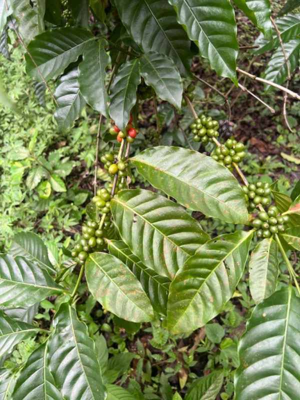 Exterior - Coffee Farm: Organic coffee plants thriving with green and red cherries.