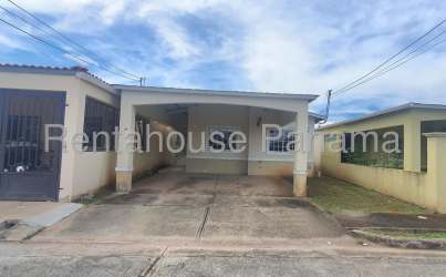 Affordable and comfortable three-bedroom, two-bathroom house for sale located in the peaceful gated Residencial Costa Oeste in La Chorrera. Offers approximately 116 m² of well-distributed living space with a sky gypsum ceiling finish, bright living and dining area, modern tiled floors, built-in closets in bedrooms, and two covered parking spots. The fenced backyard and patio provide outdoor privacy. The community has children's play areas, parks, sports courts, visitor parking, and 24/7 gated access—all ideal for family life. Located close to supermarkets, schools, clinics, hospitals, and with fast access to the Pan-American Highway. Great investment opportunity west of Panama City priced at only $70,000. Low HOA fee. Contact Casa Nova Realty Panama’s Maria Lopez today to schedule a visit!
