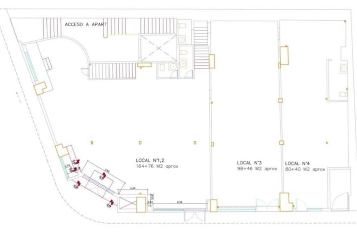 Multiple storefront glass windows facing pedestrian streets.