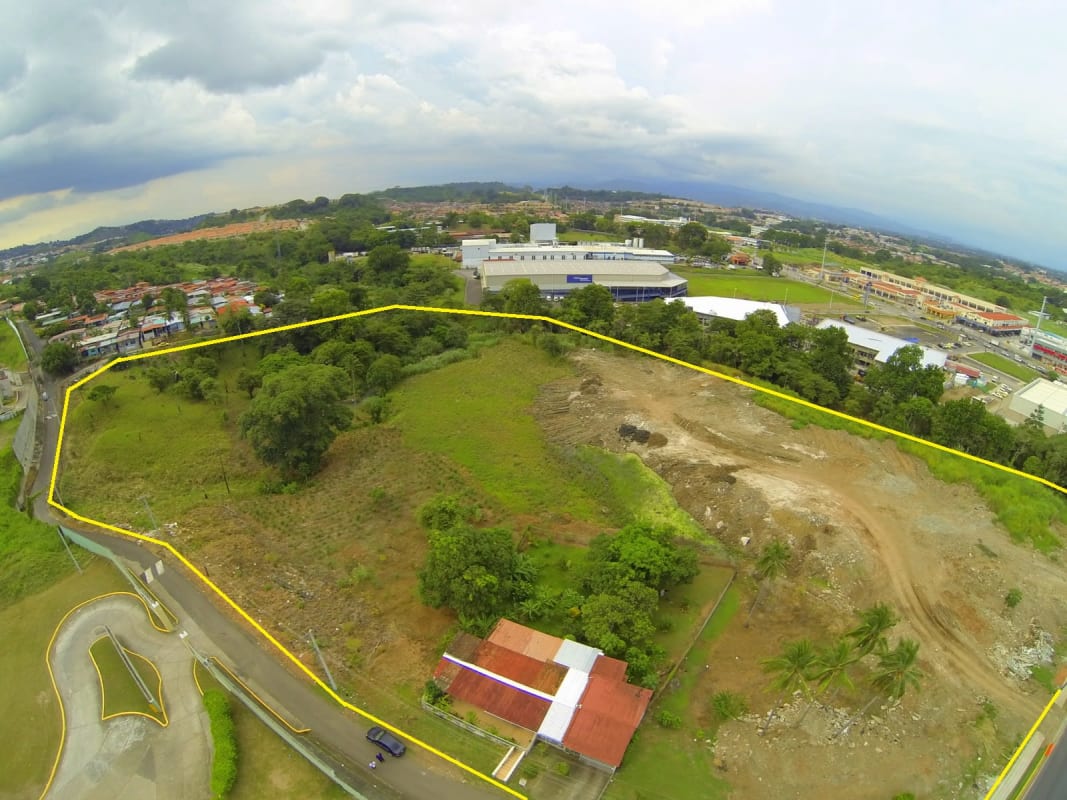 Aerial site: Large vacant lot fronting Vía Tocumen with high exposure and development potential.