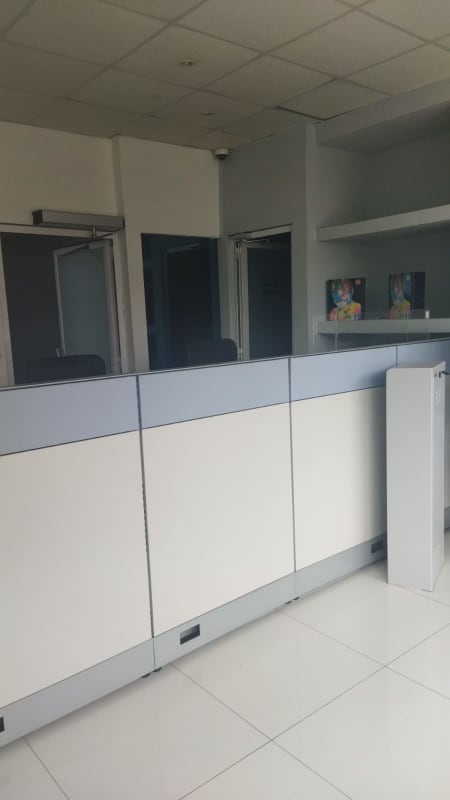 Reception desk and glass doors inside commercial property for rent near El Dorado Panama