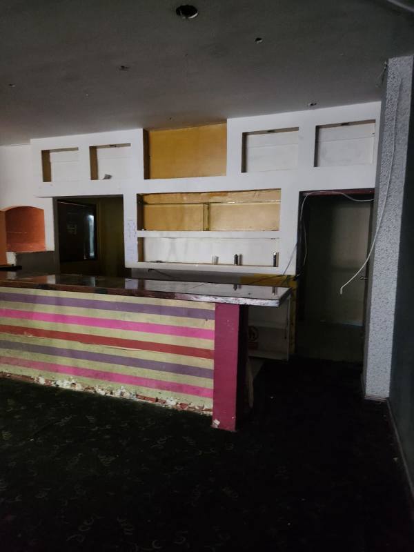 Commercial space: Vacant bar area space ideal for customization within the commercial center.