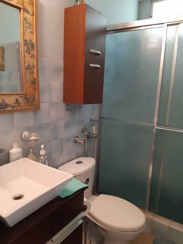 Traditional bathroom with vessel sink, glass shower, and wall cabinet in PH La Alameda Villa de las Fuentes Panama
