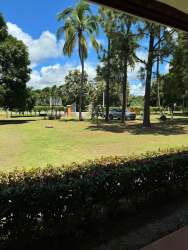 Garden areas with palm trees and tropical plants