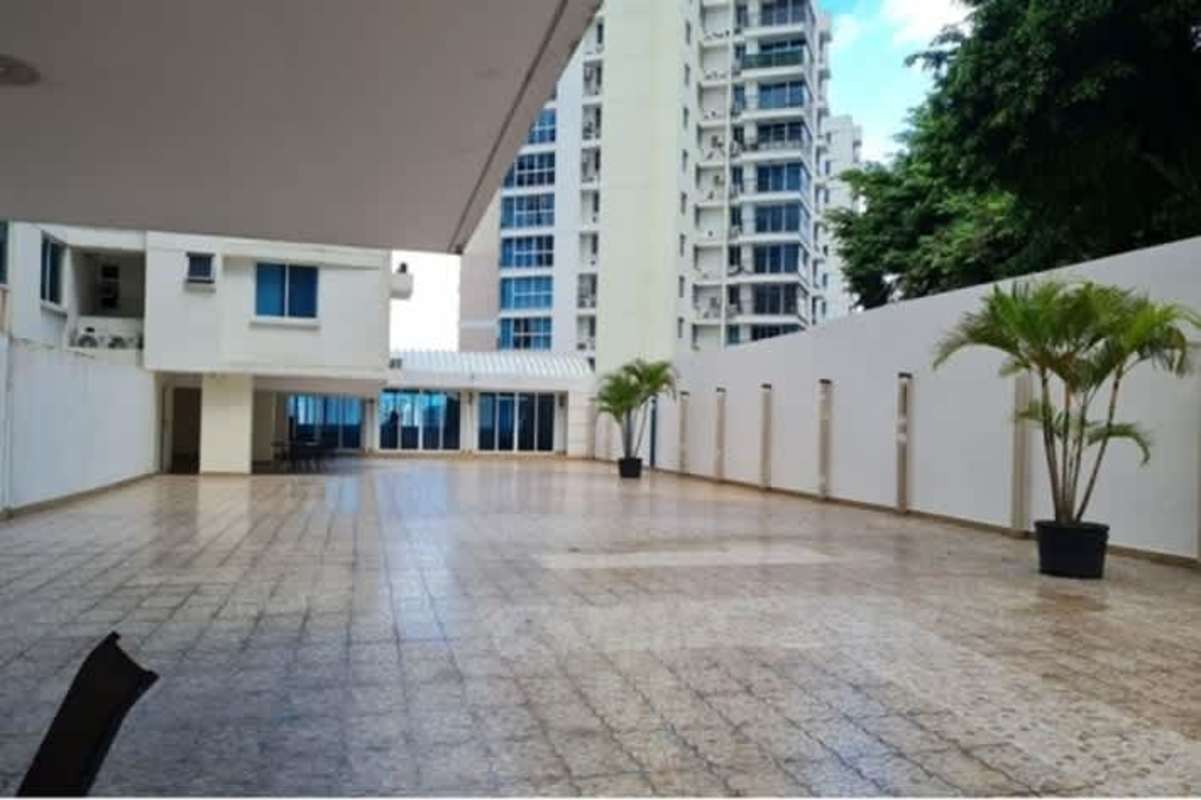 Open courtyard space with palm trees and privacy walls in PH Nuevo Betania Betania Panama