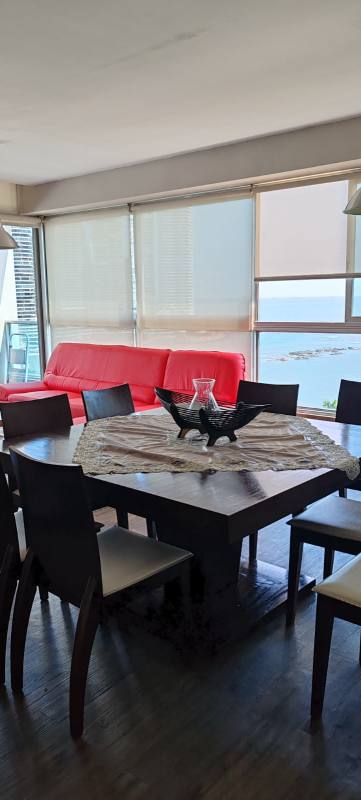 Enjoy coastal living in this luminous, fully furnished one-bedroom apartment at PH Bayfront Tower on Ave Balboa. The spacious 100.4m² open layout features floor-to-ceiling windows with stunning ocean views, modern kitchen with breakfast bar, 1.5 bathrooms including guest powder room, and balcony with panoramic vistas. Located on the 11th floor, offering privacy and views. Amenities include oceanfront infinity pool, fully equipped gym, sauna, social room, 24hr security, concierge, parking, and visitor spaces. Walk to Cinta Costera Park, banking area, shops, cafes, metro. Available now at $1,500/month. Perfect for professionals and couples seeking vibrant Panama City urban living. Contact Casa Nova Realty Panama today.