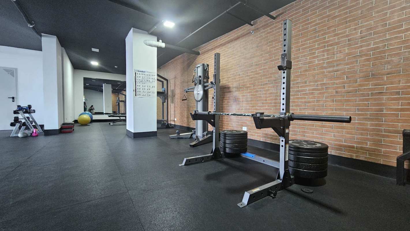 Modern gym with free weights and machines