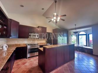 Casa Shilo is a sprawling 555 m² mountain estate in the prestigious Altos del María community. This American-standard villa sits on an expansive 3,216 m² lot, offering ultimate privacy and breathtaking panoramic views of Cerro Picacho and lush forests. The hacienda-inspired design seamlessly integrates indoor and outdoor living, featuring oversized windows, covered terraces, and a lush tropical garden. The primary suite includes a walk-in closet, marble-accented ensuite with jacuzzi tub and shower. Two guest bedrooms share a modern bathroom with upgraded finishes. A remodeled chef's kitchen includes high-end appliances. The living room and dining area feature vaulted ceilings and natural light. Outdoor highlights: infinity-style pool with natural stone border, large covered veranda ideal for entertaining, pool bath, gardener’s storage, and 2-car garage. Enjoy fruit trees such as mango, avocado, cacao, bananas & citrus. With cool mountain climate, full security, low HOA fees, and community amenities, this prime villa is perfect for peaceful living or investment. Priced at $550,000 – contact Casa Nova Realty Panama today to schedule a private tour.