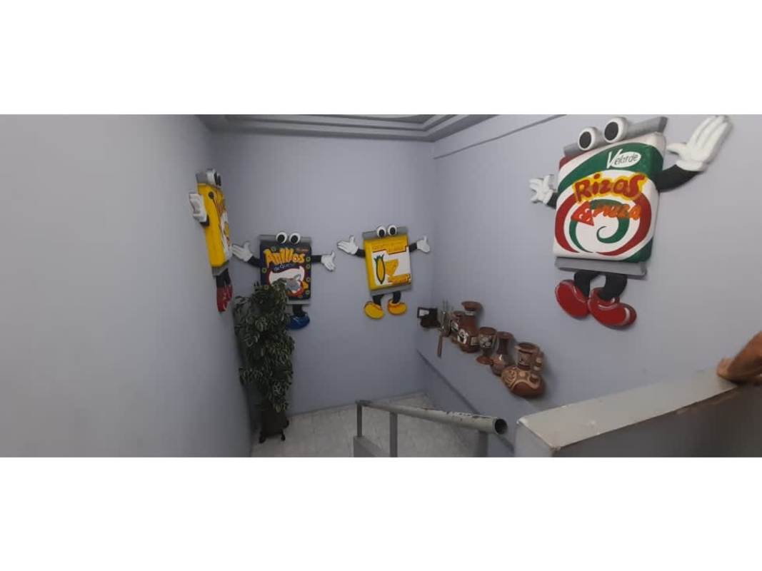 Indoor stairwell with decorated walls inside Orillac industrial warehouse near Transístmica Panama City