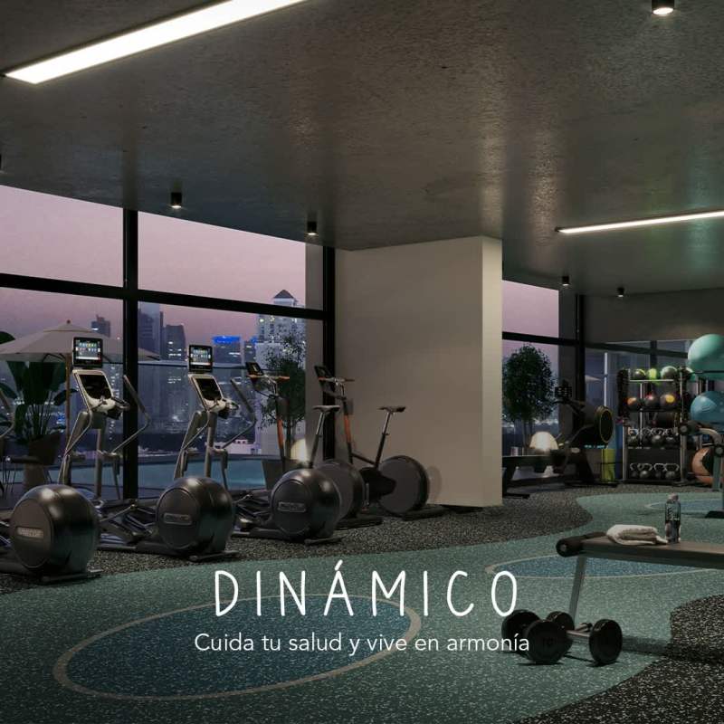 Fully equipped gym with skyline views