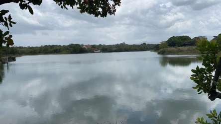 Vacant green lot facing lake in quiet San Carlos neighborhood Panama Oeste perfect for residential