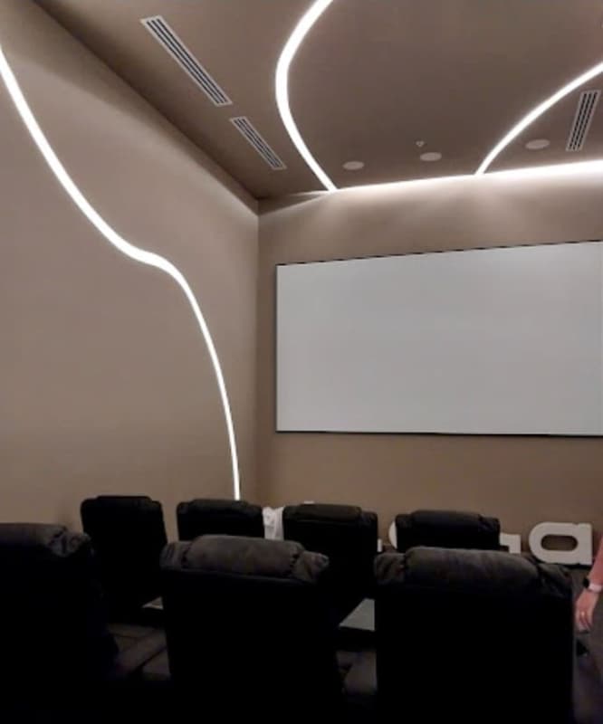 Home Theater: Modern private cinema with acoustic design and ambient lighting for ultimate entertainment.