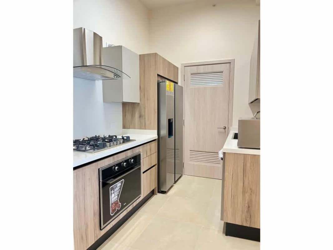 Contemporary kitchen with quartz countertop, stainless steel appliances at PH Ocean House Santa Maria Panama