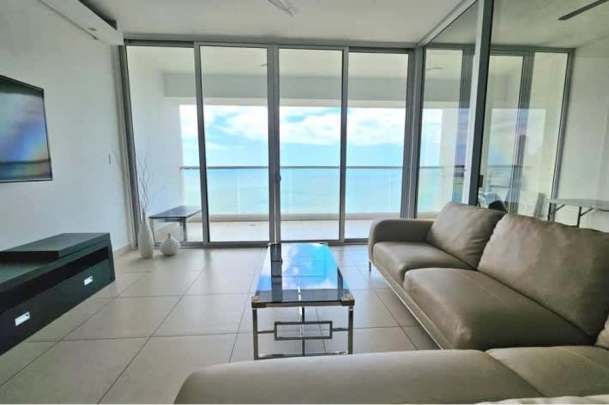 Spacious 150m² luxury apartment at PH Rivage Tower with stunning panoramic ocean views. This fully furnished rental features 2 bedrooms (master with direct sea views), 2 modern bathrooms, stylish open concept kitchen with stainless steel appliances, large living dining area with floor-to-ceiling windows, and a private balcony overlooking the bay. Includes 1 covered parking space. Building amenities offer infinity pool, gym, spa, tennis court, social areas, 24/7 security and concierge. Ideal waterfront location on Avenida Balboa steps from parks, dining and business. Rent: $1,700/month. Available now via Casa Nova Realty Panama. Contact Maria Lopez at +50763611367.