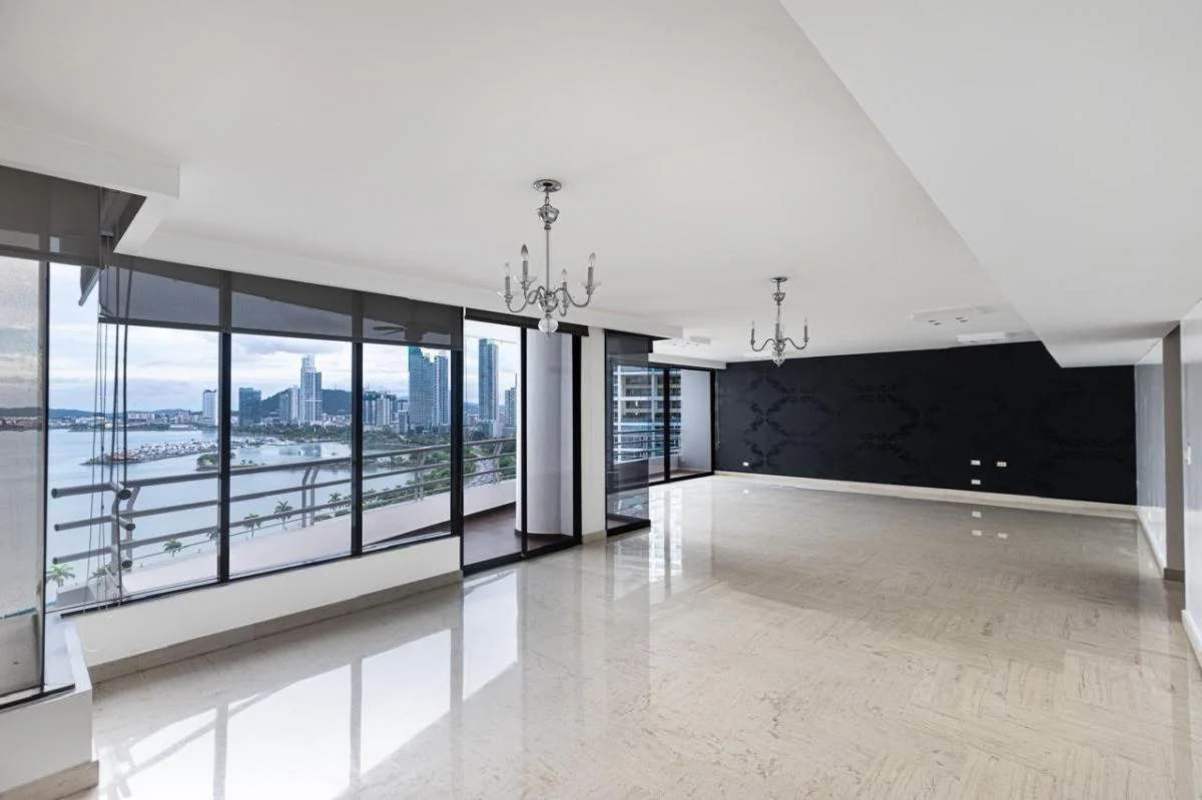 Spacious luxury apartment of 290 m² in PH Los Delfines on Avenida Balboa, featuring stunning panoramic views of Panama Bay and the city skyline. The fully remodeled unit offers 3 bedrooms, 3 bathrooms, spacious living and dining areas with floor-to-ceiling windows, a large terrace overlooking the ocean, modern kitchen with granite countertops and green mosaic tiles, walk-in closets, and fine porcelain floors. Includes 2 covered parking spaces. Building amenities feature an infinity pool, gym, social hall, children's playground, sauna, backup generator, and 24-hour security with concierge service. Walking distance to malls, parks, restaurants, banking district and nightlife. Low HOA fee of $100/month. Exceptional opportunity to own a prime waterfront apartment in central Panama City, ideal for living or investment. Contact Casa Nova Realty Panama to schedule your private visit.