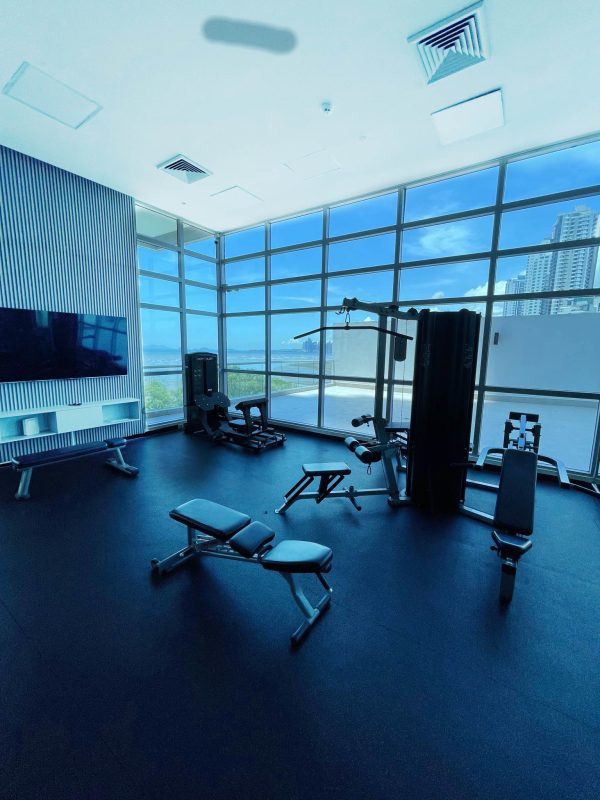 Fully equipped fitness center overlooking the ocean.