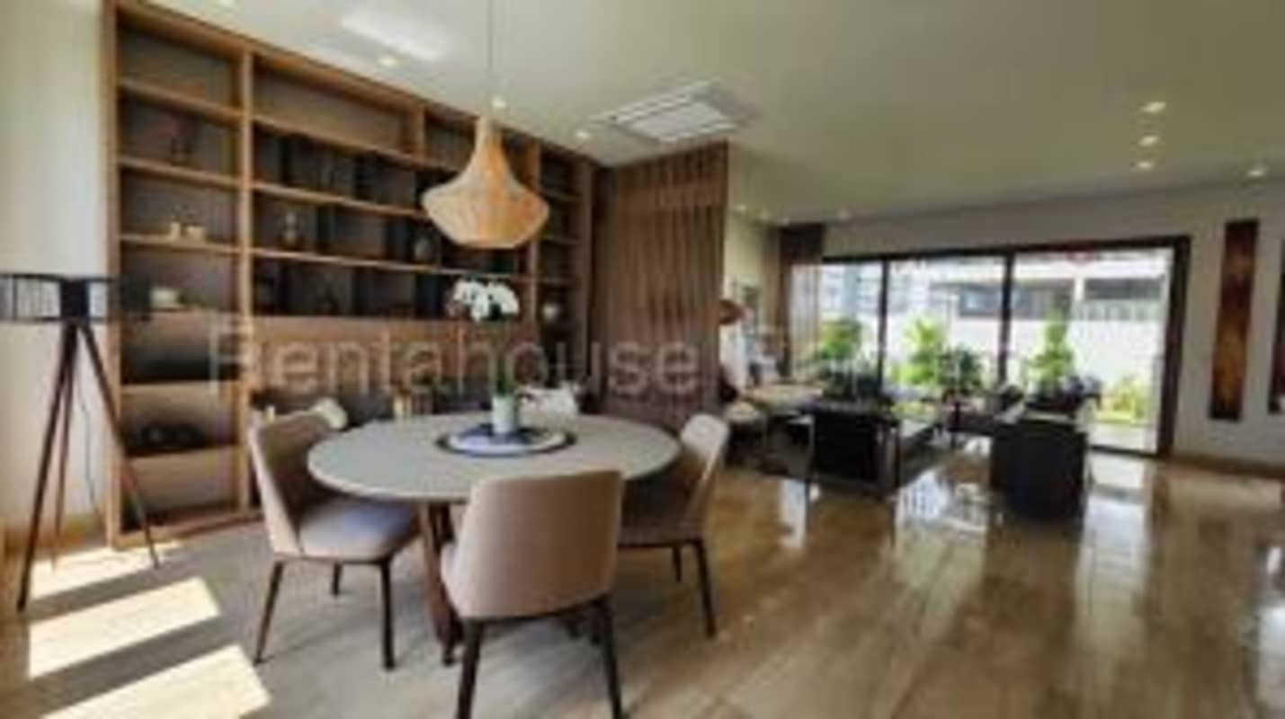 Spacious open living dining area luxury house with marble floors view to garden PH The Woods Santa Maria Panama