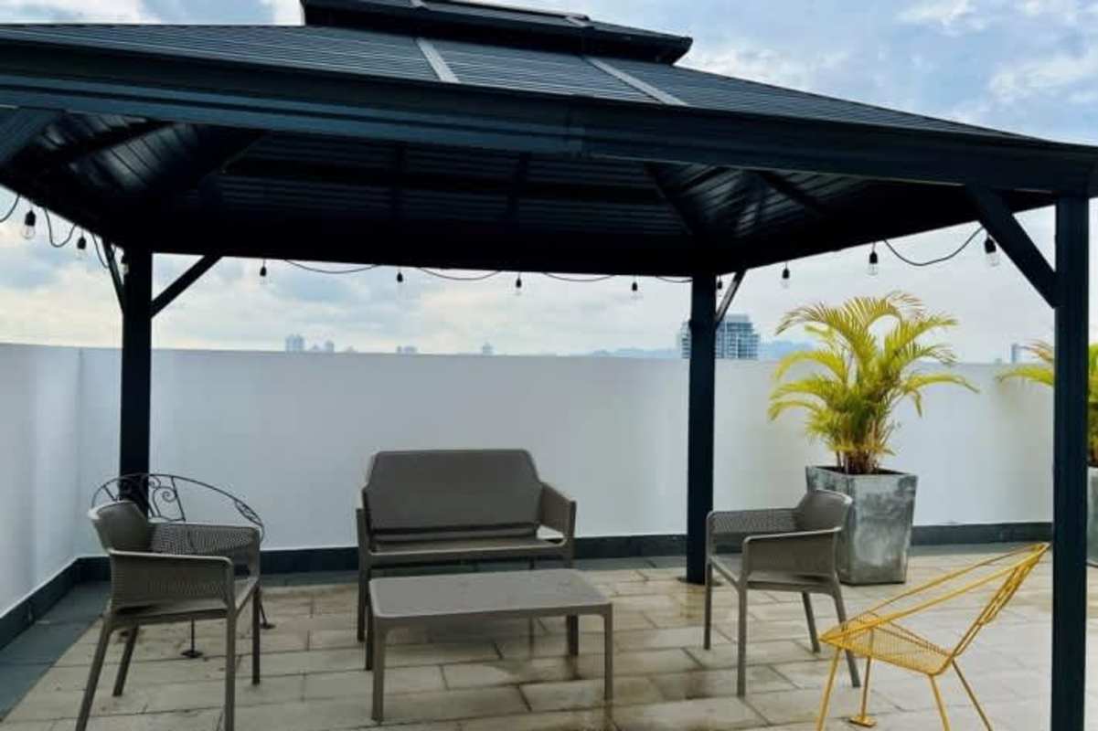 Elegant rooftop social area with barbecue zone