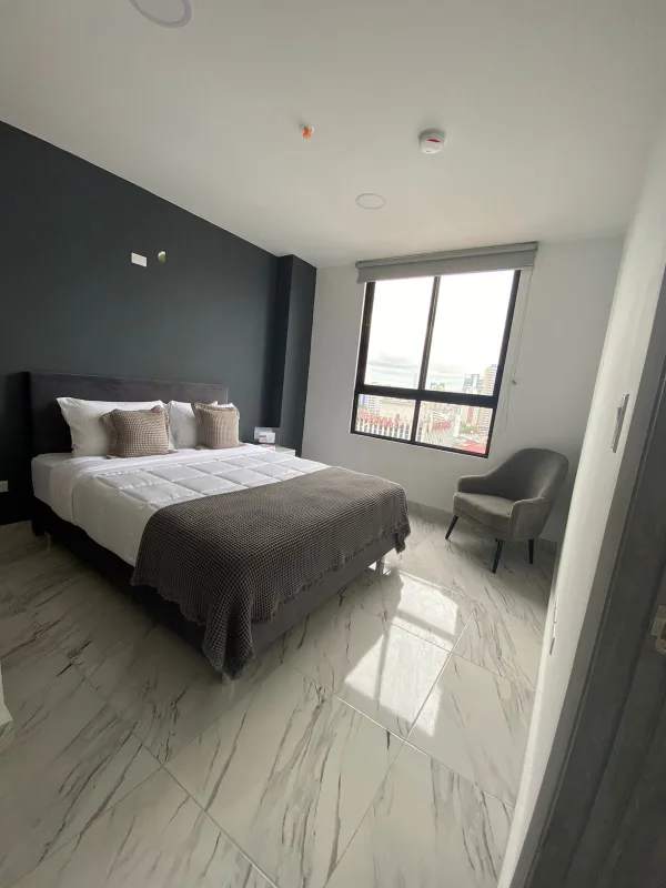 Bright bedroom with large window and closet in PH Marvela Calle 50 Bella Vista Panama
