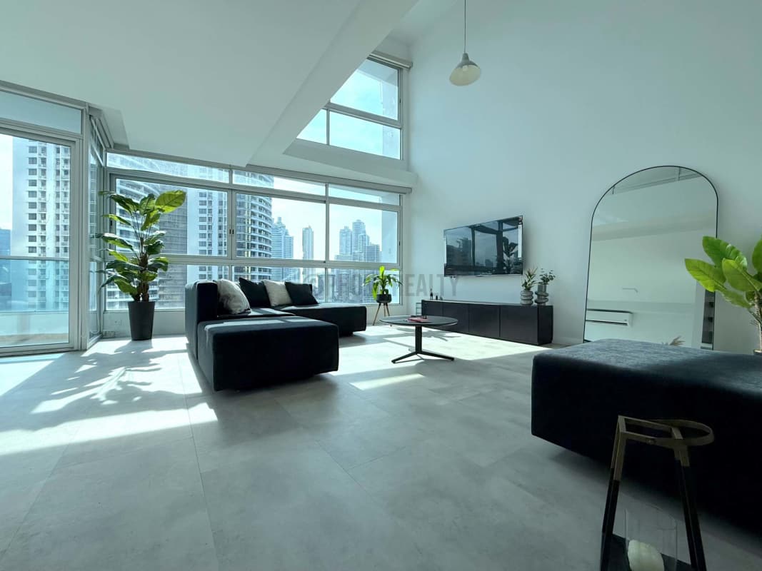 Experience upscale living in this spacious 120 m² loft apartment for rent at iconic PH BICSA Tower on Avenida Balboa, Panama City. This modern duplex loft features floor-to-ceiling windows with panoramic ocean and skyline views, open-plan living-dining area, a sleek fully equipped kitchen with granite counters, and a sea view balcony. Upstairs, find a serene master suite with private bathroom, large closets, and half guest bathroom below with optional den/office area. Enjoy contemporary finishes and abundant natural light throughout. Building amenities include an infinity pool, gym, sauna, BBQ, children's area, business lounge, concierge services, and 24-hour security, all in a prime waterfront location near Cinta Costera, banking district, fine dining, malls, and nightlife. Includes one secure parking space. Ideal for professionals or couples seeking luxury lifestyle in Panama. Available now at $1,650/month – contact Casa Nova Realty Panama to schedule a private tour.