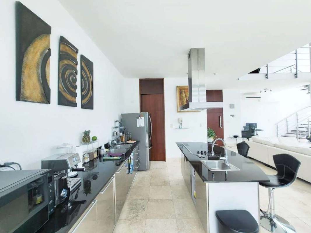Stylish open kitchen with granite counters and dining loft in Punta Pacifica Panama