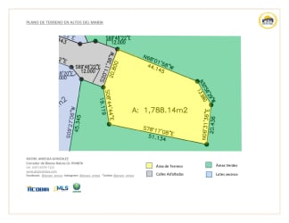 Survey map showing boundaries and dimensions of 1,788m2 lot in Altos del María Rioca Sector