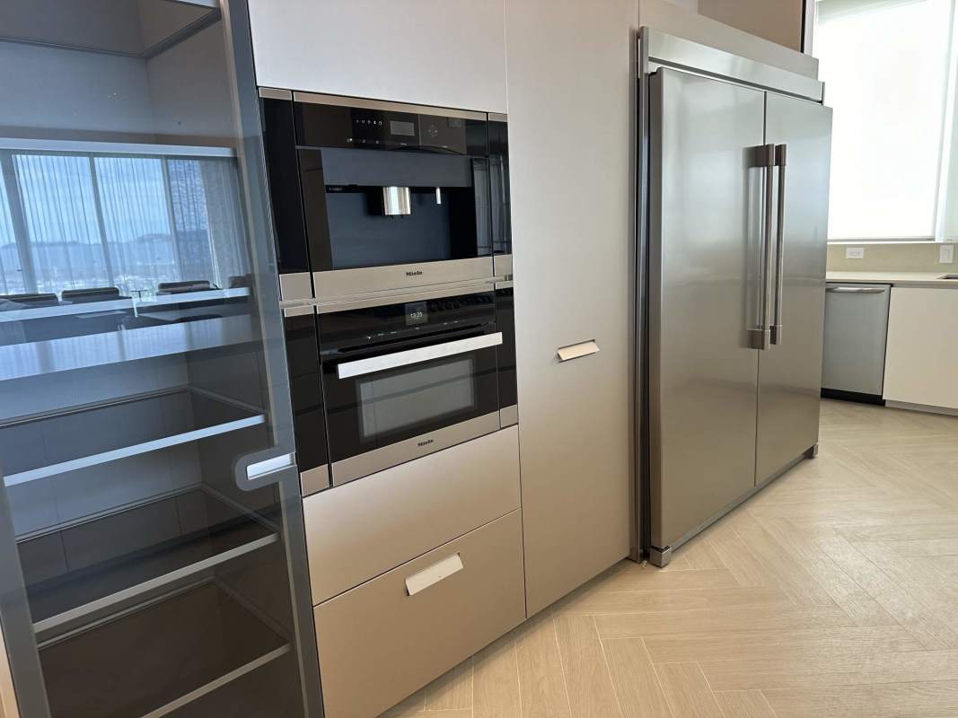 Contemporary kitchen with luxury appliances facing marina at Ocean Reef Islands Panama