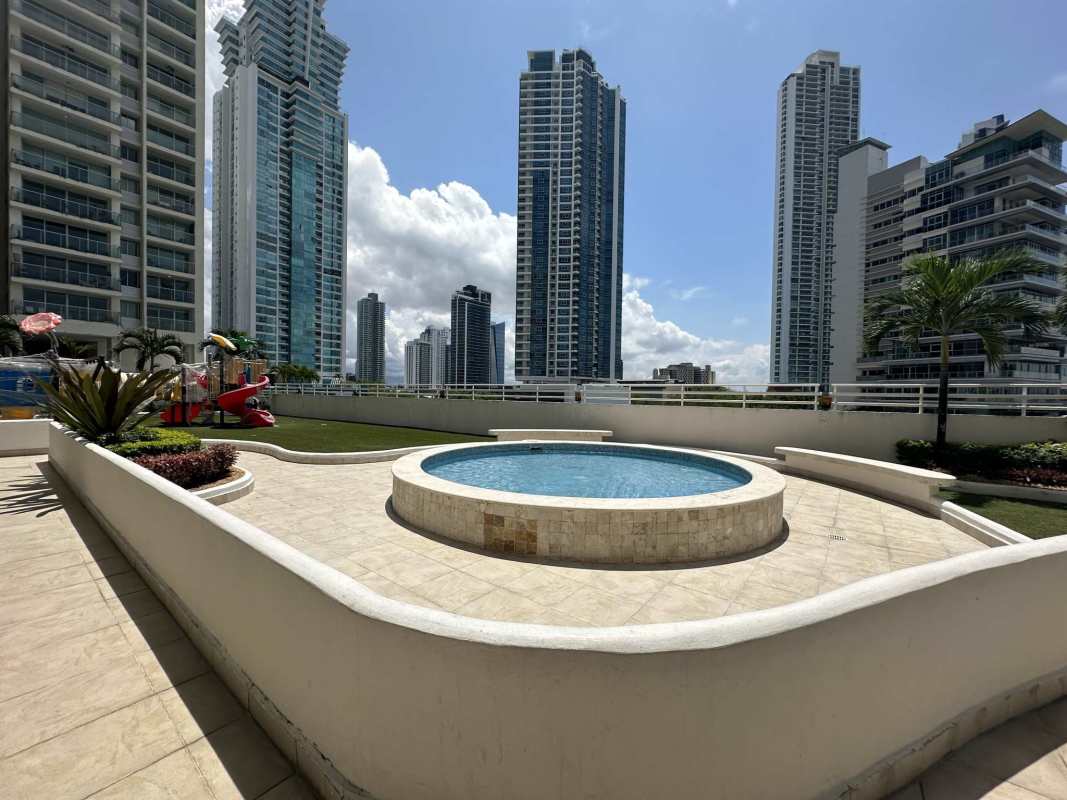 Rooftop amenities: infinity pool, children's playground, and skyline views at PH Panama Bay Tower Costa del Este Panama City