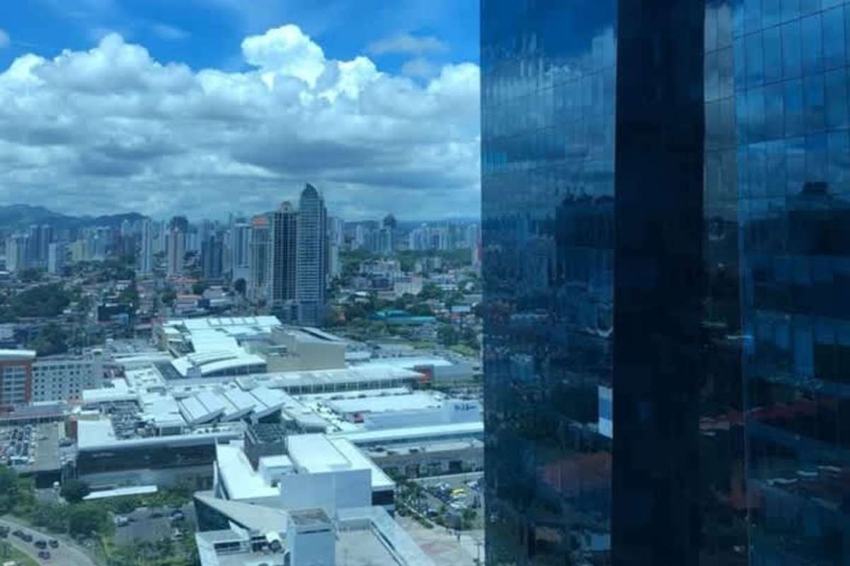 Shell office space with floor to ceiling glass and panoramic ocean and skyline views in Punta Pacífica Panama City