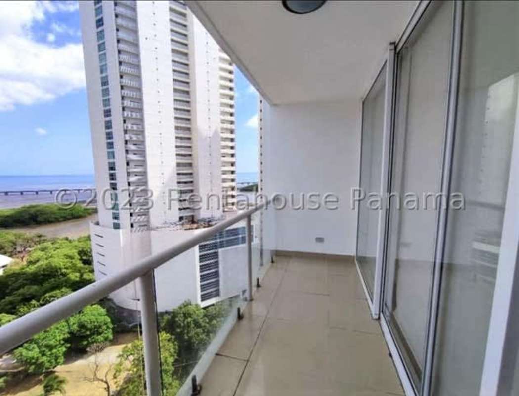Balcony with panoramic ocean and city skyline view at PH Coco del Mar Panama City