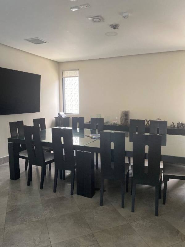 Spacious conference room with large glass table, flat-screen display, and modern lighting in Via Porras Business Center Panama City