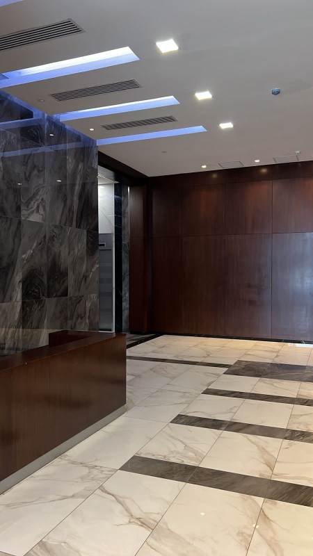Luxurious reception area with directory listing.