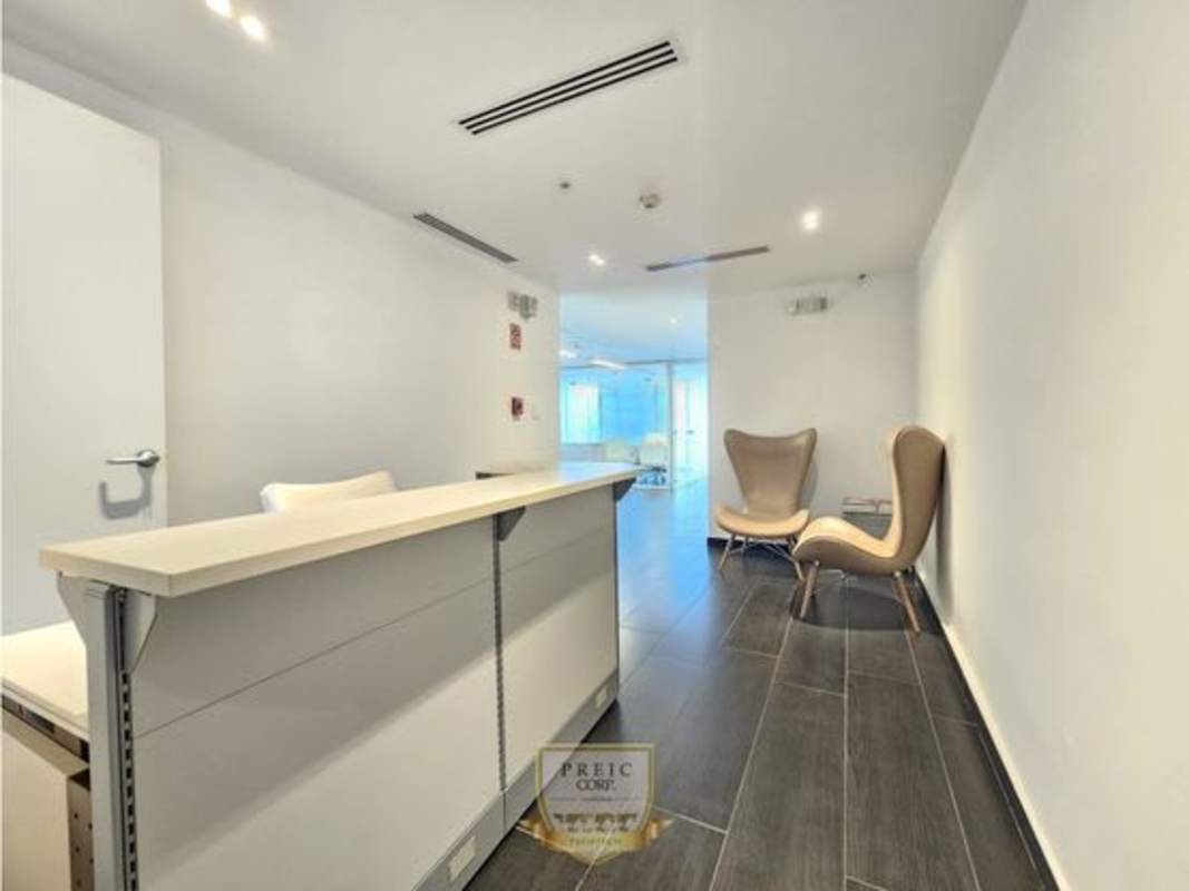 Many offices feature floor-to-ceiling windows with sea and city vistas