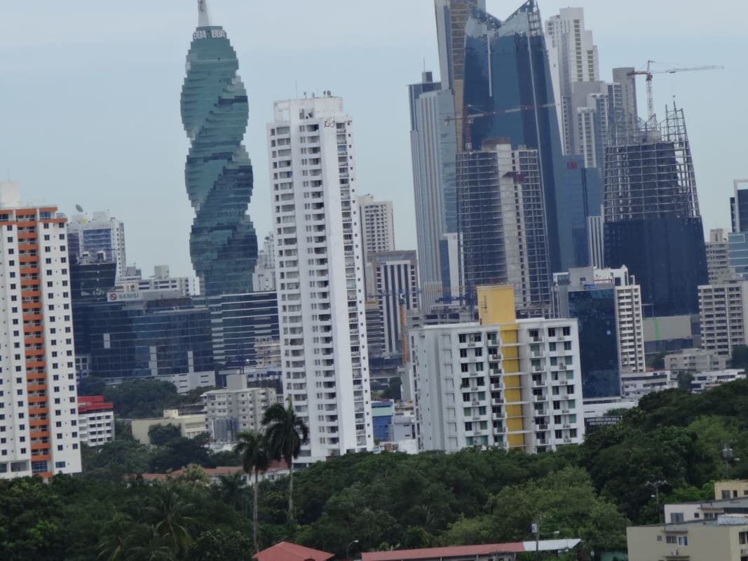 Aerial panorama of Panama City skyscrapers including investment hotel and casino properties