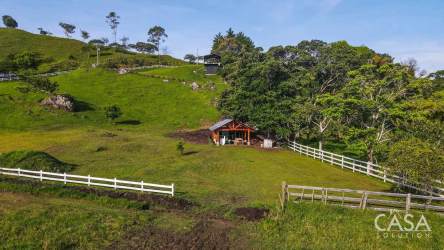 Aerial view of rural land with green pastures, white fencing and mountains in Volcán Panama perfect for residential build