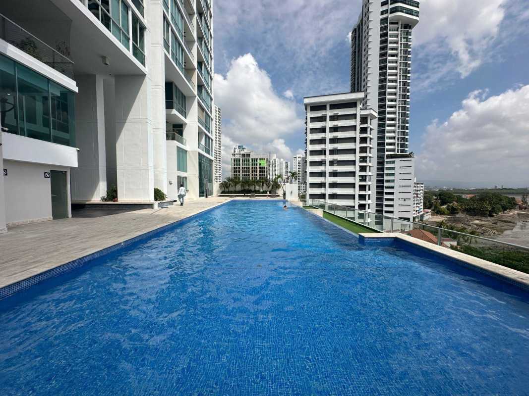 Luxurious rooftop infinity pool with panoramic ocean and skyline views at PH Venetian Tower in Coco del Mar Panama City