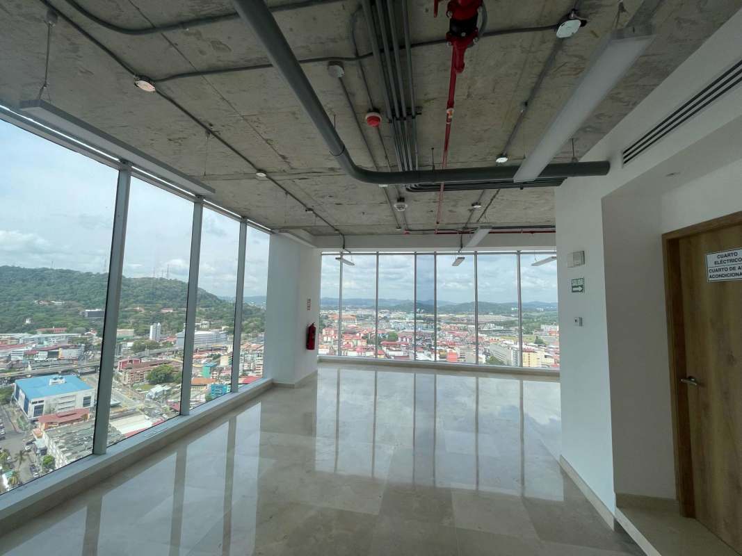 Panoramic floor-to-ceiling window office space with city and ocean view in PH Balboa Office Center Panama City for rent