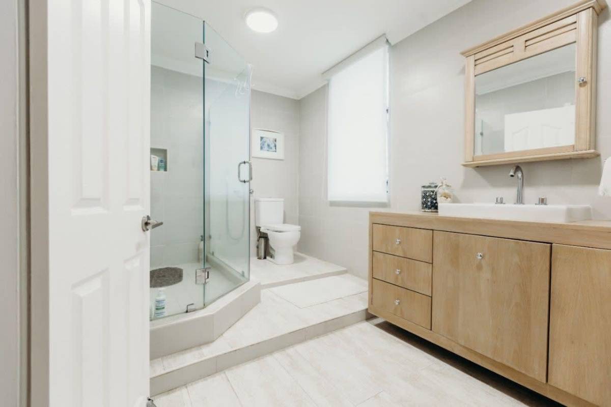 Contemporary bathroom with glass shower and vanity PH Prestanza Panama City